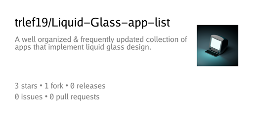 ByteMe@lemmy.world · 14 days agoI made an app list for Liquid glass, inspired from material3 app list. I hope you like it! Feel free to suggest any apps or correct something wrong :)plus-squarecodeberg.orgexternal-linkmessage-square4linkfedilinkarrow-up16