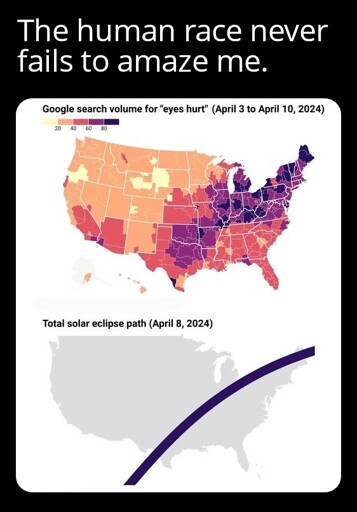 Would you prefer the post be entitled “Humanity that stares at the sun during totality never cease to amaze me” and kill what tiny semblance of a joke is there?
