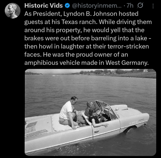 The Picard Maneuver@piefed.world to People Twitter@sh.itjust.worksEnglish · 5 days agoLBJ knew how to have funmedia.piefed.worldimagemessage-square28linkfedilinkarrow-up1614