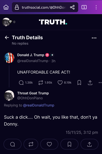 It’s not about homophobia, Bill Clinton was impeached because of the Monica Lewinsky stuff, and that’s not illegal either. It’s more of the fact that his fan base think he’s above reproach while victimizing people in that community. It’s more like “what now? Trump likes a dick down as well” also, he talks shite about just about everyone even his allies and refuses to acknowledge anything problematic about himself or his family. Like, it’s not about any of the stuff you’re wondering about. Were making fun of him because he’s a fascist loser who I’m sure would get on his knees were the price to his liking. That’s all.