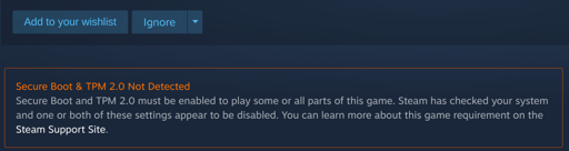 It’s odd that I’ve only seen complaints about there being hackers in the game in the context of the anti-cheat. Nobody that I’ve played with or any of the people in my games have complained about hackers, yet every conversation involving the TPM/ secure boot bullshit (which I agree is ridiculous and invasive) involves multiple claims of hackers.