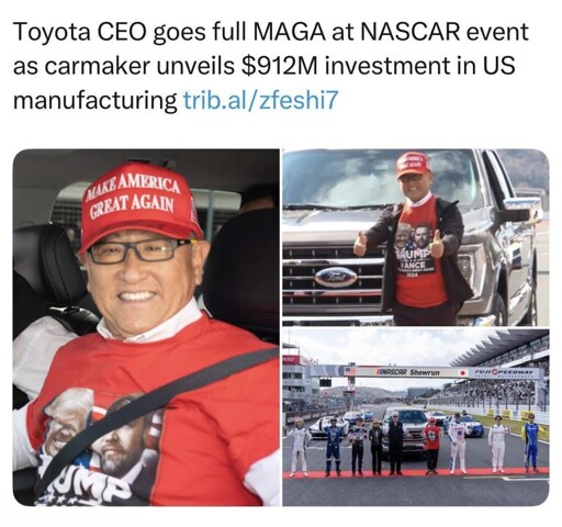 Toyota has been a made a ton of donations to the right wing for anti-ev policies for years, so this is a victory lap outfit for him