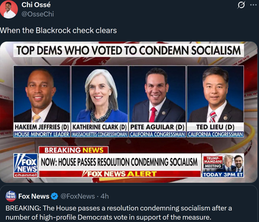 I think it’s more how your donors play to this performative bs, Jeffries is in Brooklyn and most of his district just elected a socialist for mayor.
