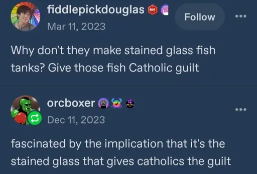 minus-squareCrashumbc@lemmy.worldlinkfedilinkEnglisharrow-up1·6 days agoOr that Catholics actually have guilt…
