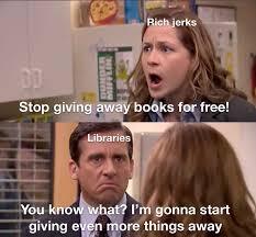 Meanwhile authors, who you might imagine might be most upset at their books being “given away” by libraries, actually love libraries and are delighted to hear stories of people checking their books out.