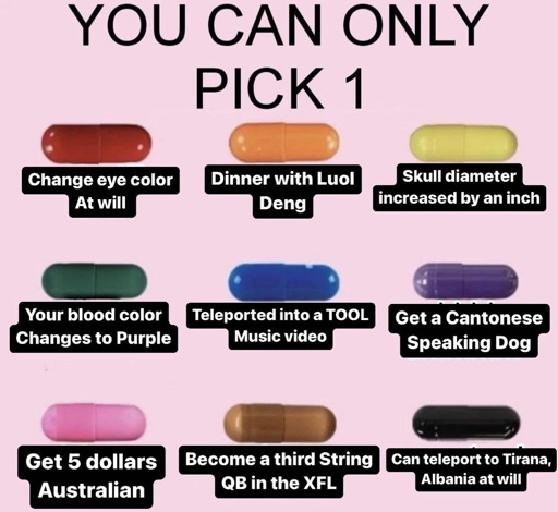 potoooooooo ☑️@lemmy.world to memes@lemmy.worldEnglish · 6 days agoWhat's your power? Choose wisely.lemmy.worldimagemessage-square240linkfedilinkarrow-up1428file-text