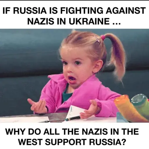 vga@sopuli.xyz to Political Memes@lemmy.world · 6 days agoIf Russia is fighting against Nazis in Ukrainesopuli.xyzimagemessage-square132linkfedilinkarrow-up1934