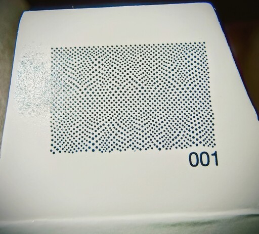 Elsewhere on the packet they used two colors of ink: a very dark blue (this) and a lighter blue. I expected it to be some kind of alignment pattern, but only one of the inks seems to have been used here, so that’s not it…