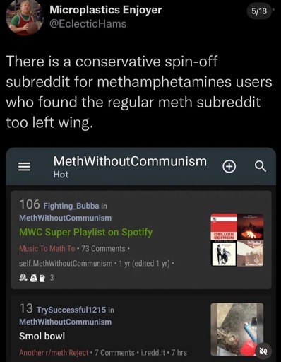 MTZ@lemmy.world to Lemmy Shitpost@lemmy.world · 2 个月前It says a lot when even the meth users don’t want the right around.lemmy.worldimagemessage-square84linkfedilinkarrow-up1628