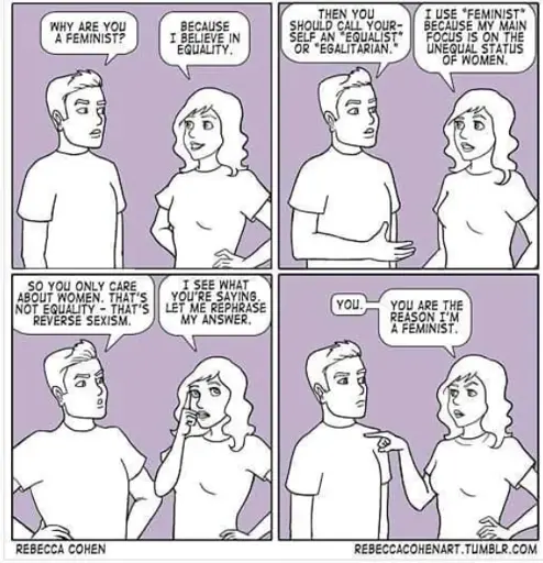 So there are two sides. Everyone in the world falls into one these sides. And all of one side got together and came up with a new set of words. These words they demand everyone use and each has built into them explanations that men are bad.