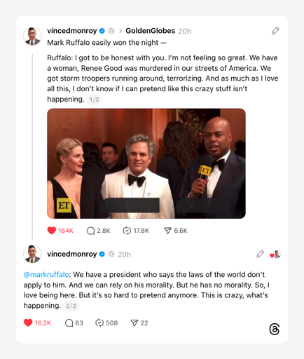 No, I just never saw him as the sort of actor that demanded much notice. He does fine work, but isn’t remarkable IMO, not like Ruffalo is.