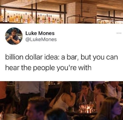 I like being able to have conversations at bars and restaurants. In my bachelor days when I was dating an amazing person she knew all the good bars and restaurants that you could actually have conversations in. We always knew going in to a social thing if it was gonna be a good conversation or just yelling and “what?”
