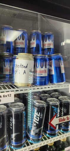 It’s okay for a stray from a broken case to be priced like the Hamms but you cannot legally obscure the label including nutritional facts.