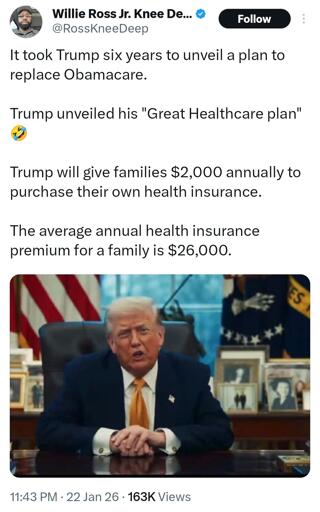 The marketplace just had their subsidies cut. Its so funny its like “here’s less than 1/3 back what we cut to line our pockets, you filthy animals, PS, fuck off and die, signed Donald Pedophile Trump.”