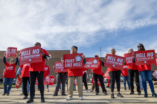 In Chicago, workers wearing red shirts saying “Fight Like Hell” packed Federal Plaza to “send a clear message to Trump & Musk” on Sunday, according to a post on X, formerly Twitter, from the Chicago Federation of Labor.
