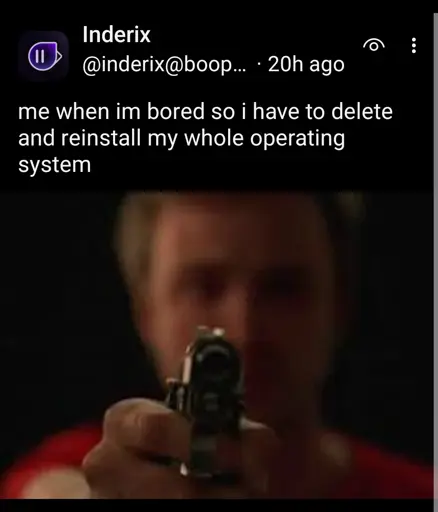not_IO@lemmy.blahaj.zone to Microblog Memes@lemmy.worldEnglish · 1 month agoit feels cleanerlemmy.blahaj.zoneimagemessage-square30linkfedilinkarrow-up1285file-text