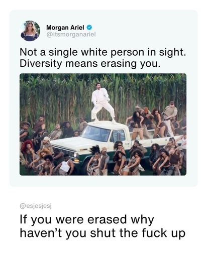 “NO ITS MY WHITE HALF TIME SHOW AND IT NEEDS TO BE WHITE FOR ME”