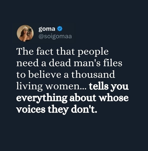 The post makes it seem like this was a typical perspective, though. I get that womens’ voices are generally not taken seriously enough when it comes to this kind of thing, but if there were one exception to this rule then Epstein seemed to be it because in my experience everyone considered him to be a dirtbag even before the files were released. Have I just been unwittingly sheltered when it comes to peoples’ views on Epstein? (Genuine question.)