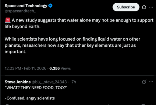 But I disagree. Water is special and unique. You can’t just swap it with a random liquid and have the same support for life.