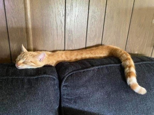 Is it a thing with orange cats to like to stretch out? My guy loves to sleep fully stretched out, like arms over head and feet way out behind him. I swear he’s like four feet long.