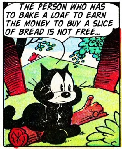 Bake me 500 loafs per month, I’ll give you a wage of 500 slices per month.