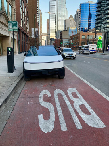 But this Tesla is illegally parking and stealing money from a private equity firm since Chicago sold all their parking revenue…