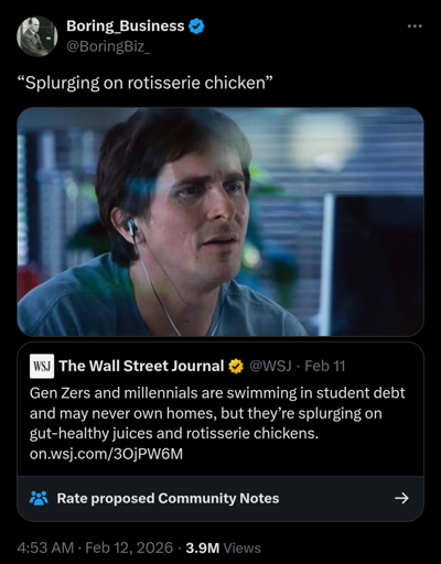 Yeah they’re cheaper than raw chickens. The store tends to buy too much chicken and some expires and would have to be thrown out… Or they can roast it right away. It’s kind of a famous economic parable at this point.