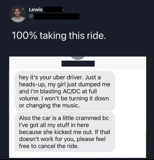 The fact that he’s communicating his misfortune openly to a stranger kinda speaks against him being an asshole. I’ll give him the benefit and take that ride.