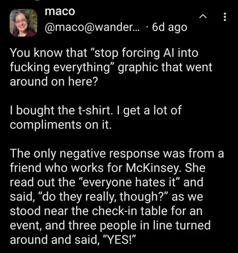 You’re really breaking the shitting on AI vibe when you make it sound like the height of human capacity and ingenuity. Can I just call it slop and go back to eating glue?