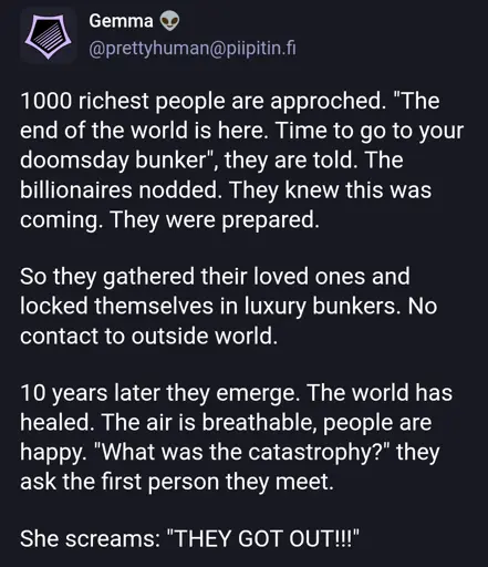 There’s a book, Survival of the Richest which is about these billionaires and their bunkers.