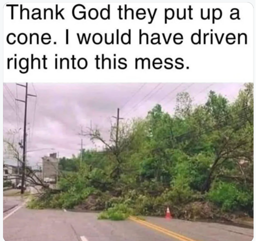 Ikr, imagine trying to drive around that one cone in the dark.