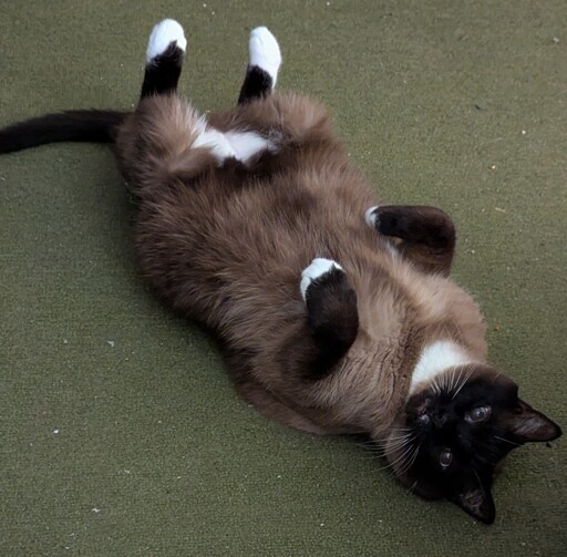 If I try to ignore him he just rolls around and sometimes does this little ridiculous “tantrum” deal where he will stand up and dramatically throw himself down and then roll onto his back. It’s always loud cause he’s a big cat. It can’t feel very good. But he does it all the time.
