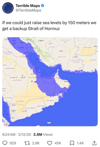 Unfortunately the best way to raise the sea levels is by using the oil from the straight itself, so we’re kind of at an impasse here