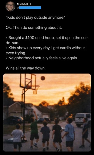 Wouldn’t kids playing outside be good for property values? Was talking to a friend and he told me he’d never raise kids in his old suburb because he never sees kids playing outside. I assume it’s similar for most parents looking for a place to start their family in, seeing there are other kids in the neighborhood who your kid can socialize and be active with seems like a major selling point.