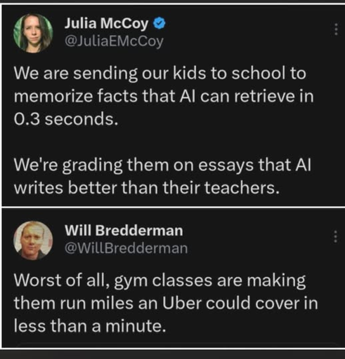 Don’t teach kids to do the work of machines. Teach them to be poets. Teach them how to research. Teach them how to think, not how to imitate the mindless behavior of an essay-writing AI.
