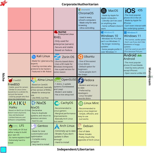 Ek-Hou-Van-Braai@piefed.social to linuxmemes@lemmy.worldEnglish · 26 days agoOperating System Political Compass - Updated versionmedia.piefed.socialimagemessage-square140linkfedilinkarrow-up1472