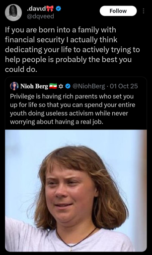 I mean, yeah. That is a privilege. She is privileged to be able to be an activist.