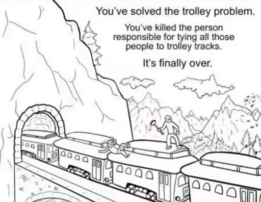 mmmmm yes the trolley problem is itself a trolley problem thereby validating its own philosophical usefulness i am very wise