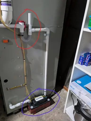 That’s the condensation pump. Without it, your furnace would build up condensation.