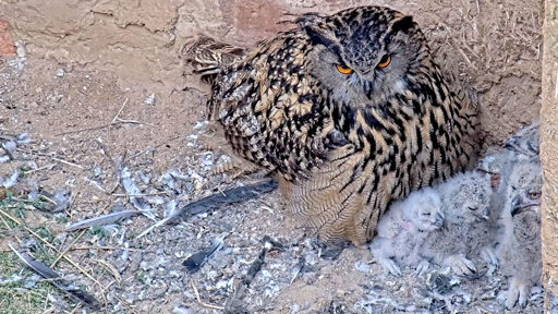 This is Isolde, she is nesting in the Eifel-region of Germany and was very early to lay eggs this year with her mate, Tristan. The image is from this month and I appteciate it for it’s maximum fluffiness. Info came from: https://egeeulen.de/uhu-webcams/foto-highlights/