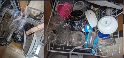 There are correct and incorrect ways to load a dishwasher. Mainly allowing for water to be able to reach all surfaces and drain away from the objects.