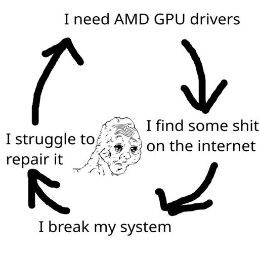 It is true and has been my experience for the last decade or so. Unfortunately, OP is trying to use a GPU from 2015 that’s still based on GCN 1.0 with the newer amdgpu driver stack, which is not officially supported. Effectively, OP is getting a taste of what it was like before AMD started pouring ressources into their open source GPU drivers.