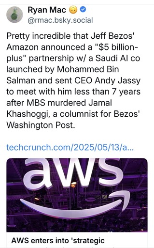 What has Jamal Khashoggi done for Bezos lately? This is about money. Let’s not get all emotional here.