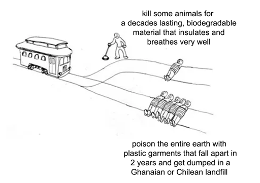 I mean we can also make long lasting clothes out of natural fibers without hurting animals.