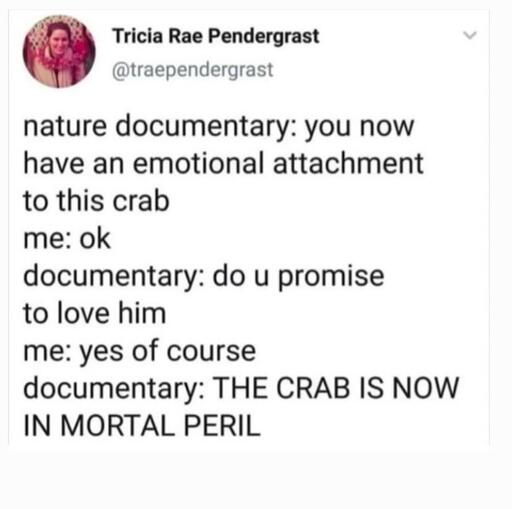 LadyButterfly she/her@piefed.blahaj.zone to Microblog Memes@lemmy.worldEnglish · 6 months agoNo not the crab! piefed.cdn.blahaj.zoneimagemessage-square4linkfedilinkarrow-up1396