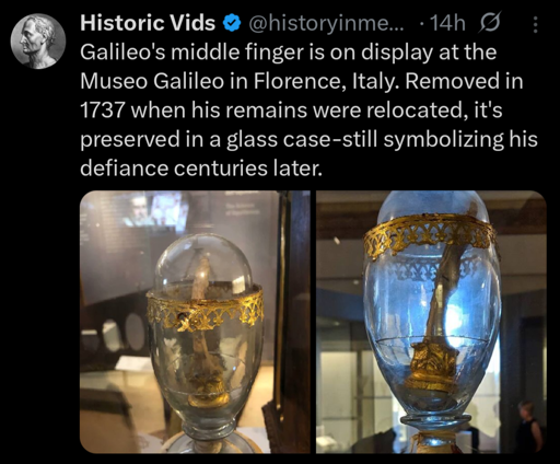 Tozzetti later wrote that Capponi’s explanation for taking the two fingers as relics was “because Galileo wrote so many beautiful things with them.”