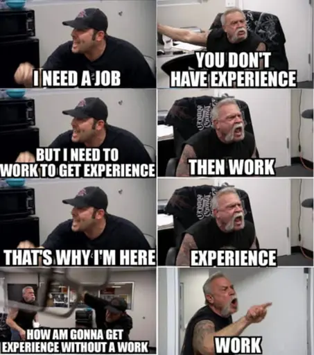 Do what I did. Go to university then you’ll get the experi…oh yeah, never mind