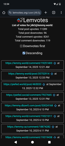 arrow-up1274imageYSK Lemvotes.org will show you votes on any post, comment, or by user, for anything on the fediverselemmy.world𞋴𝛂𝛋𝛆@lemmy.world to You Should Know@lemmy.worldEnglish · 1 month agomessage-square58linkfedilinkfile-text