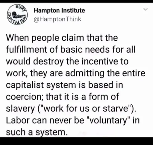 You missing the point. People will do work when it is required whether or not they desire to do work. It doesn’t require a magic job creator to get work done.