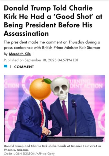 They already started talking about “violent left” before the guy was even found, declaring antifa as a terrorist organization, ignoring that it isn’t organization, what does antifa have anything to do with it? Suspending Kimmel (saying Meyers and Fallon are next). Kimmel want even commenting about Kirk, was pointing at trump how he didn’t even give damn about Kirk.